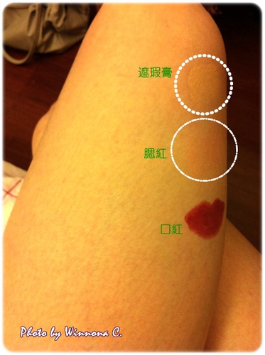於是從我的眾多家私中挑選顏色最深頗有難度的給重重的畫在我的大腿上~~